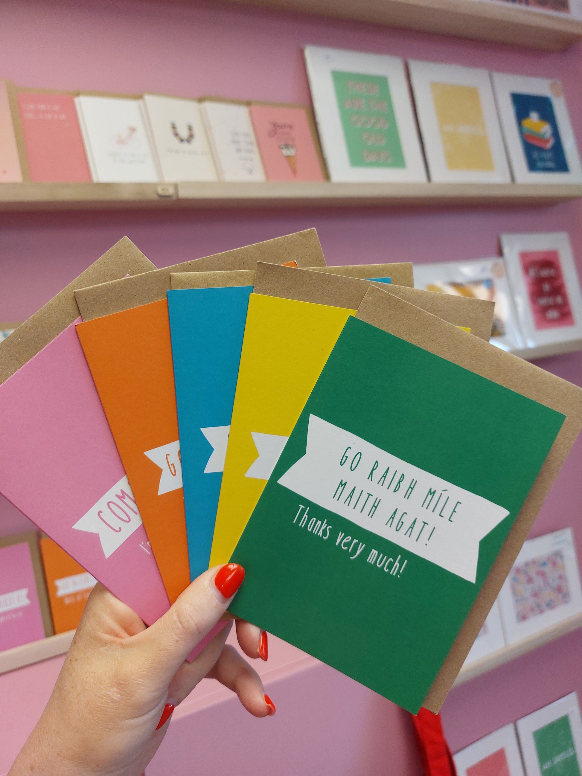 Cards are A6 size printed on recycled paper with brown kraft envelopes.