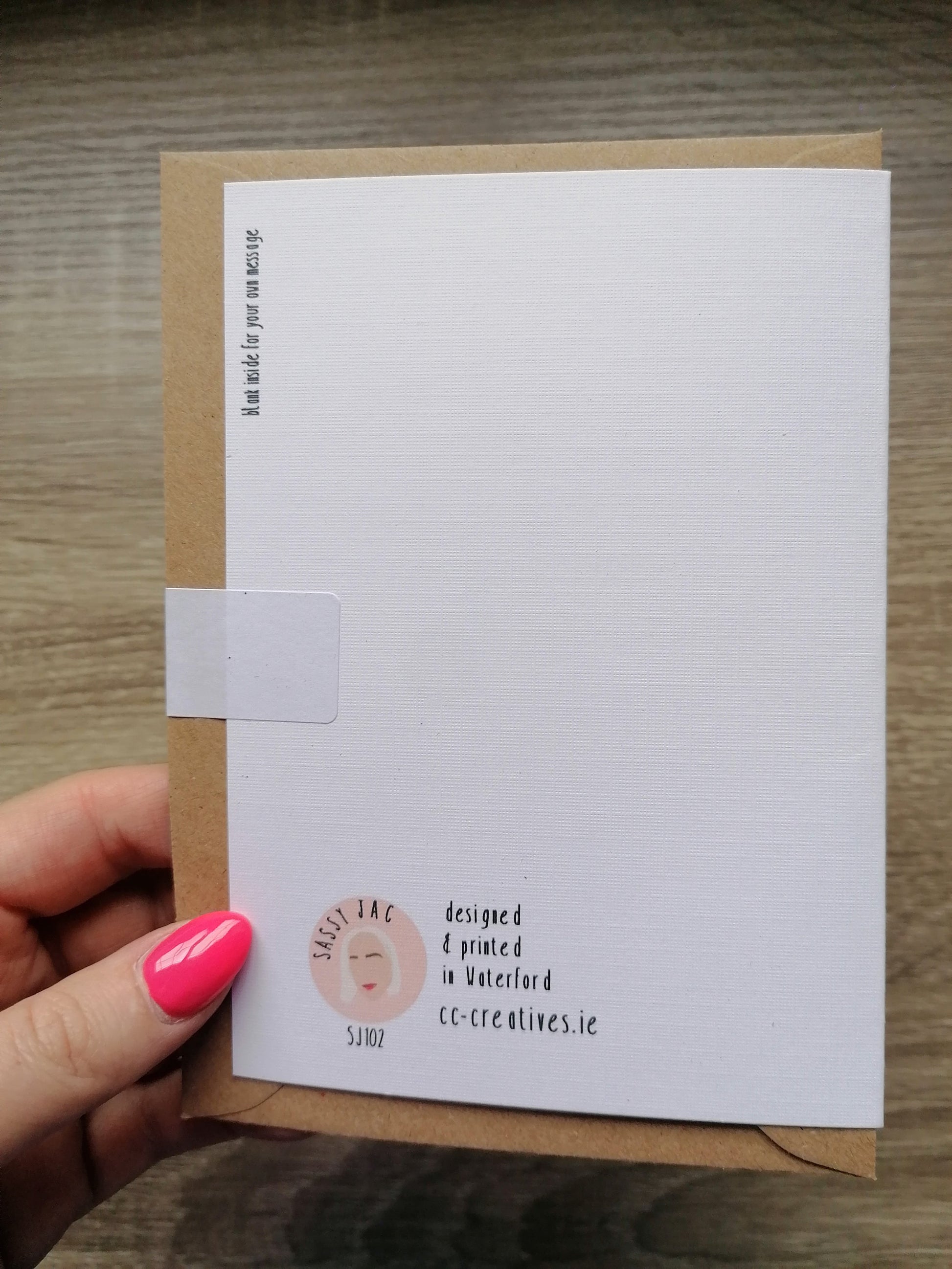 Cards are A6 size printed on recycled paper with brown kraft envelopes and an easy peel compostable card clasp.Â
